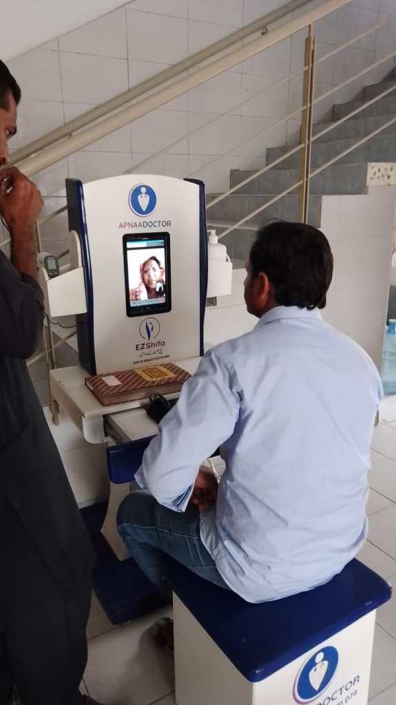 Training and awareness session was given by the EZShifa team on August 25, 2024 at Child Health Foundation Bhittai clinic for upgrading the Digital Medical kiosk to provide ultrasound. The kiosk was also upgraded to provide ECG, Dermascope, Color vision and eye testing, primary screening for Autism, ADHD and other psychoses and hearing tests. Usage of kits for blood tests like Diabetes, Hepatitis & Tuberculosis, and pregnancy testing were demonstrated. The session was very successful and a learning experience for the participants who included the Principal of Schole Academy, head of Miftah-ul-Uloom madrassah and a boarding school administration who were keen to introduce this excellent screening opportunity provided by telemedicine in easy steps and an affordable cost at the primary level. It was appreciated and applauded by all.