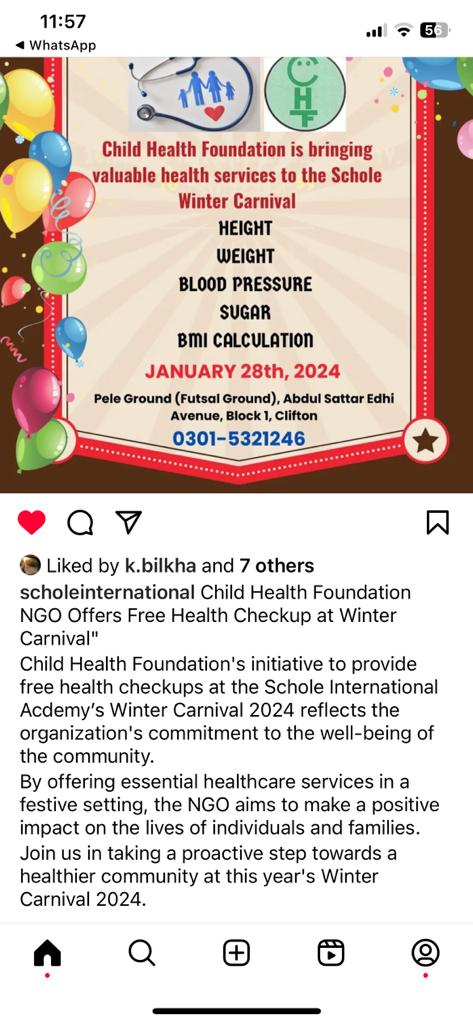 Schole Academy proudly displays it’s affiliation with Child Health Foundation, both in letter and spirit, a cause which it supports wholeheartedly by reserving a special corner for CHF in the school, in appreciation of the good work CHF does for the underserved population of children. Undoubtedly, this awareness holds a special meaning for CHF as it struggles to make a difference in the lives and health of children as well as their families and in doing so bringing a positive change in the community as a whole.