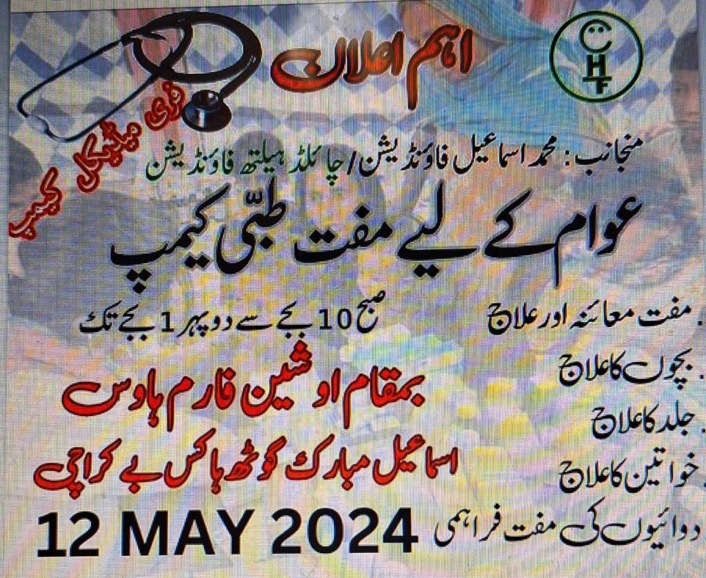 Another successful camp was arranged on May 12, 2024 between Child Health Foundation and Ismail Farid Foundation at Jamali Goth where more than 460 patients were seen and given free medications and consultation. Doctors and specialists including Neurophysicians attended.